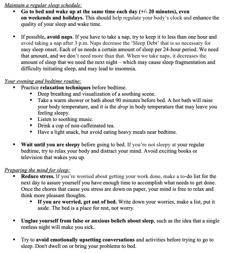 behaviors, and sleep routine are all part of good sleep hygiene.